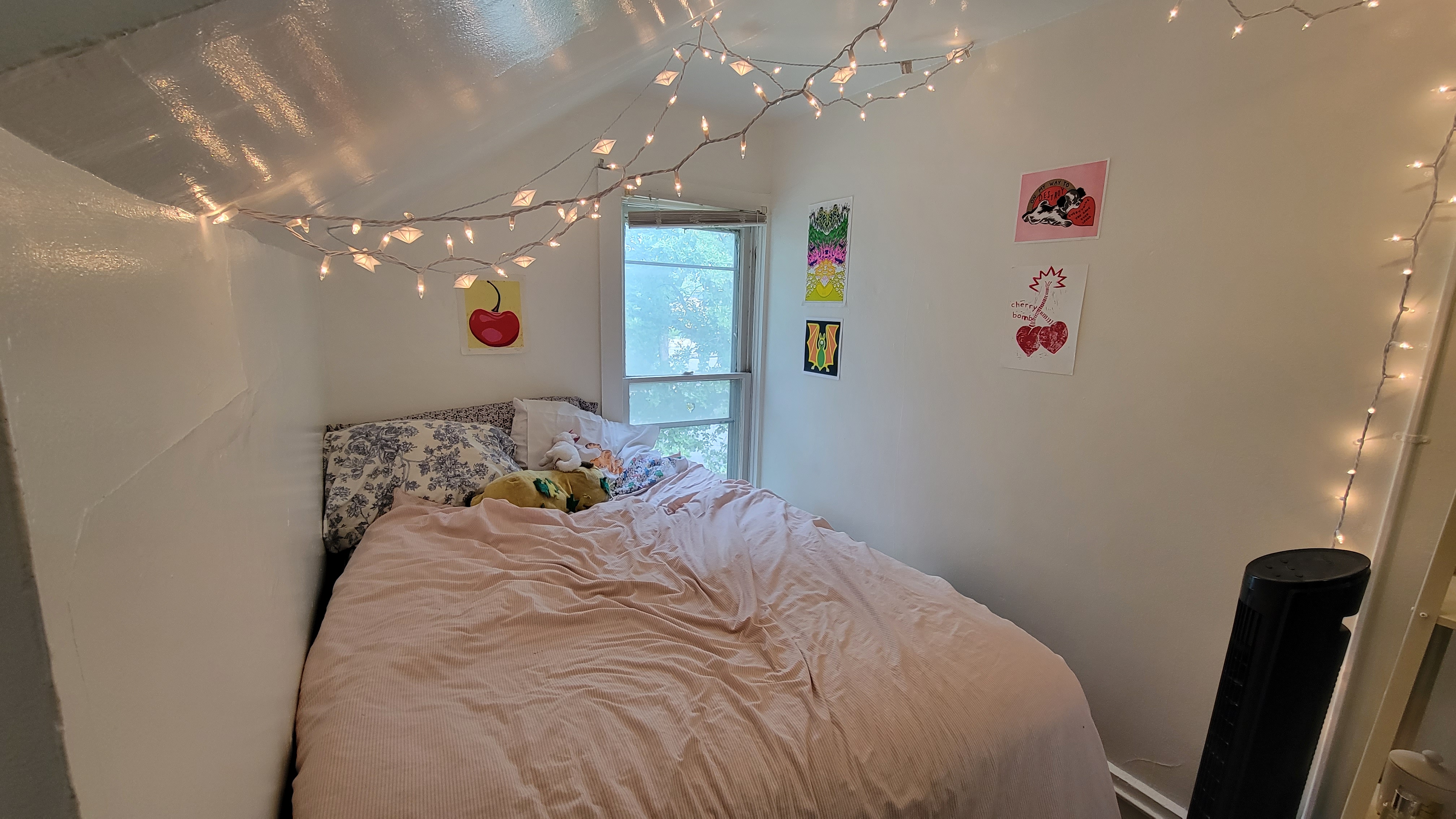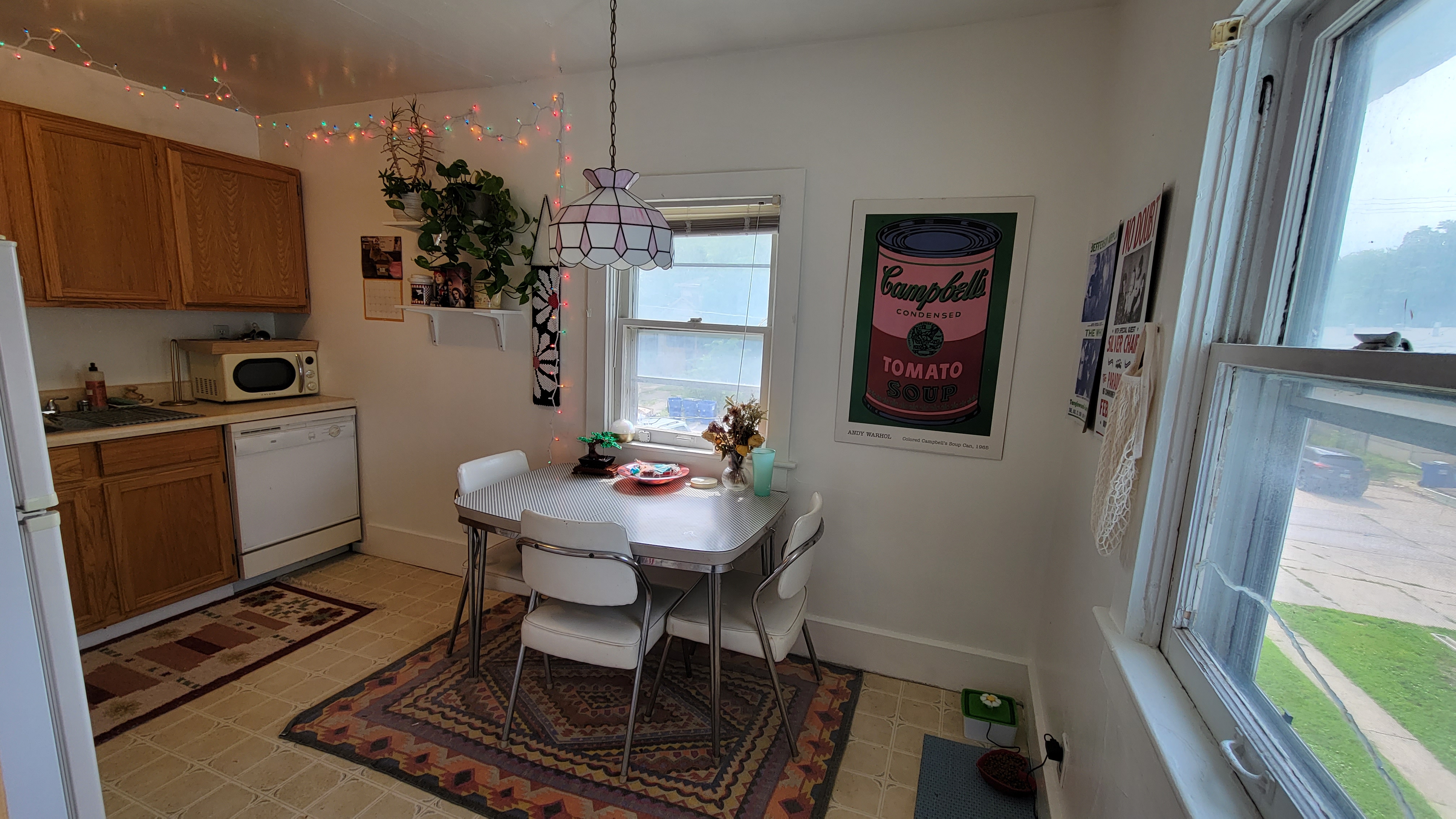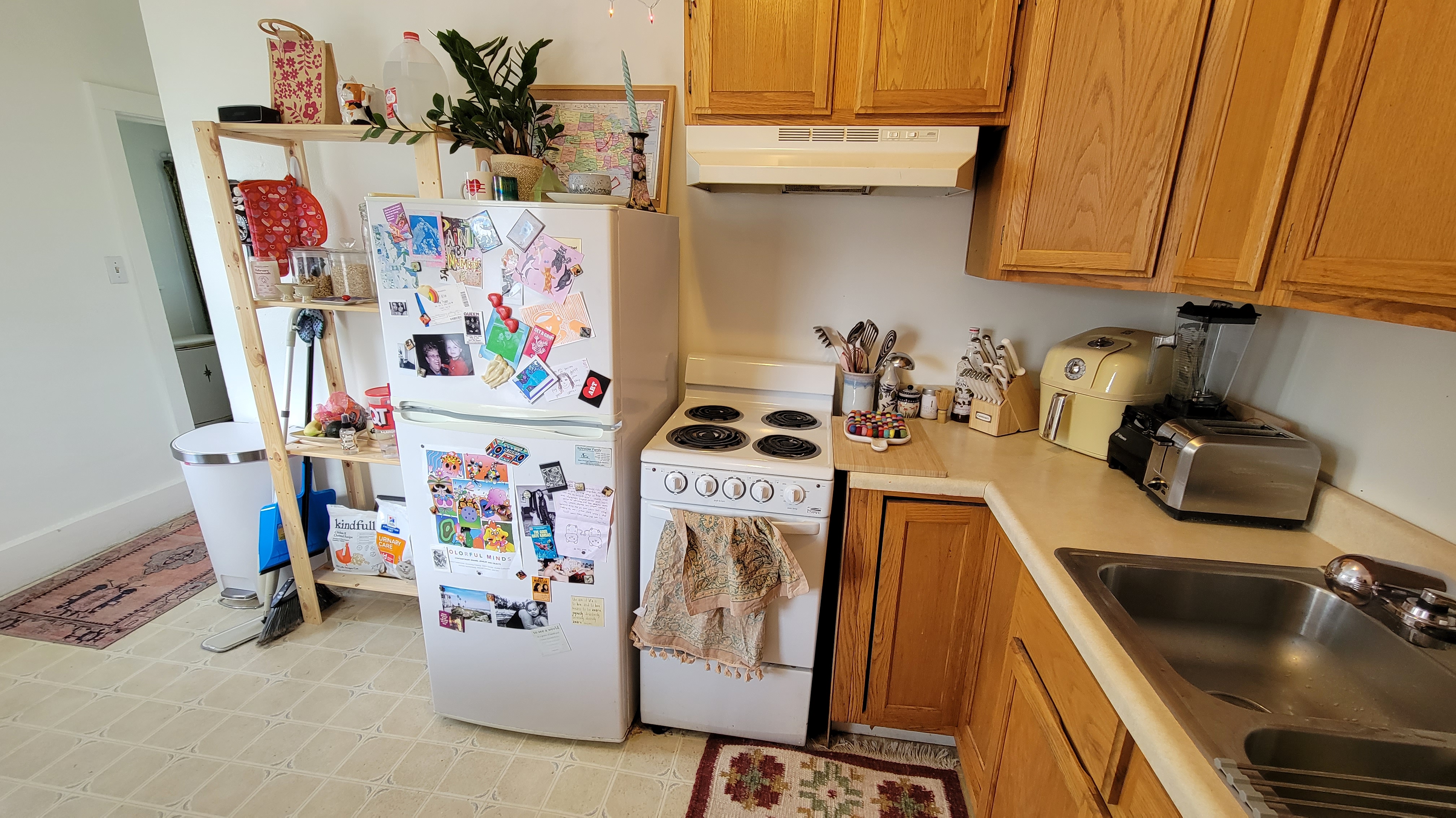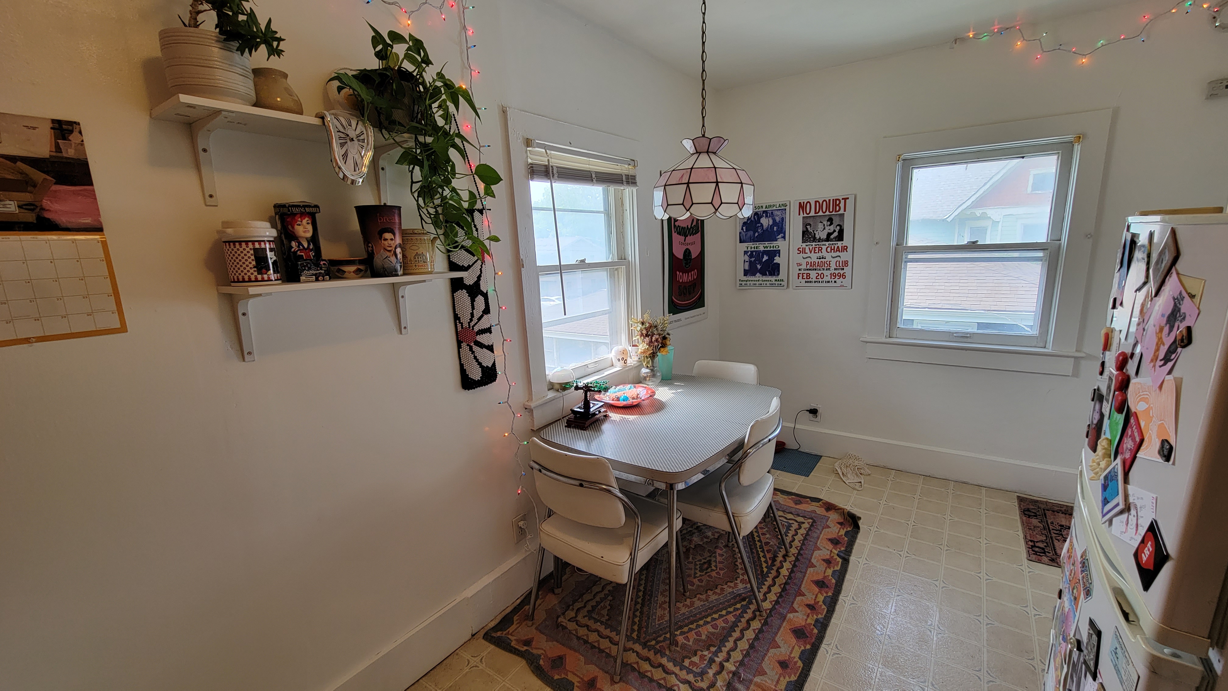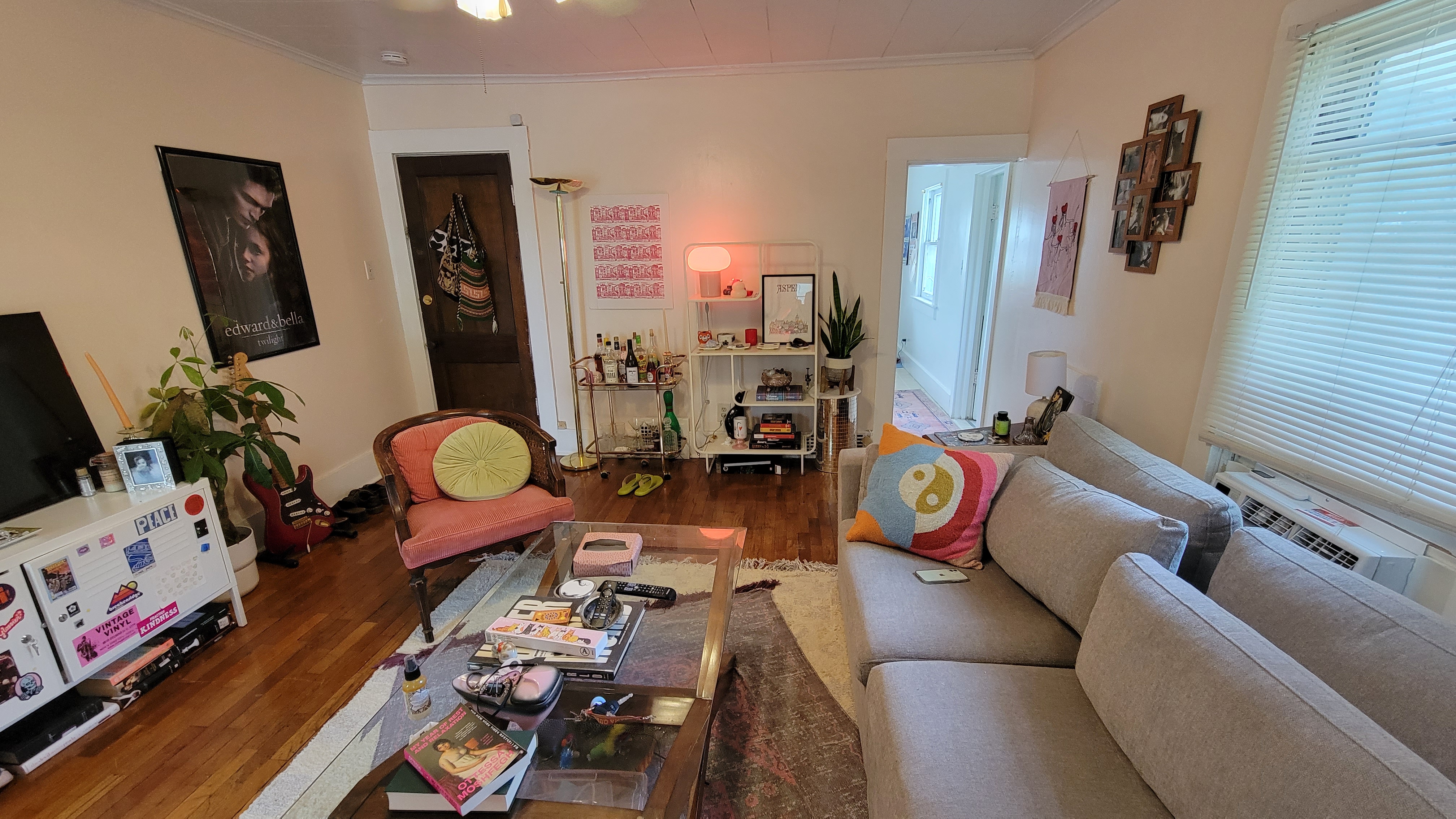 There is a door in the back of the house that takes you to the shared laundry room in the basement. There is a shared basement laundry room with a free full size washer and dryer. Behind the house, you will have access to off street parking. This apartment gets 1 parking space.